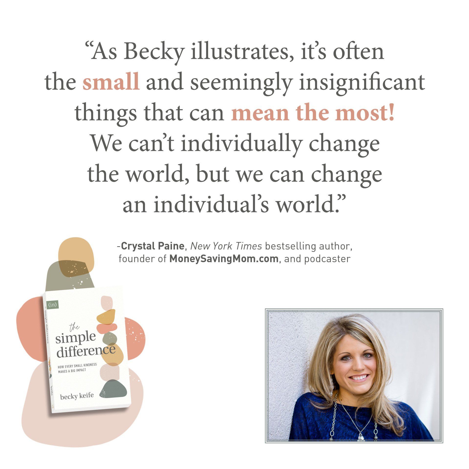 - discard expectations of what it takes to make a difference and delight in the life-changing power of simple kindness