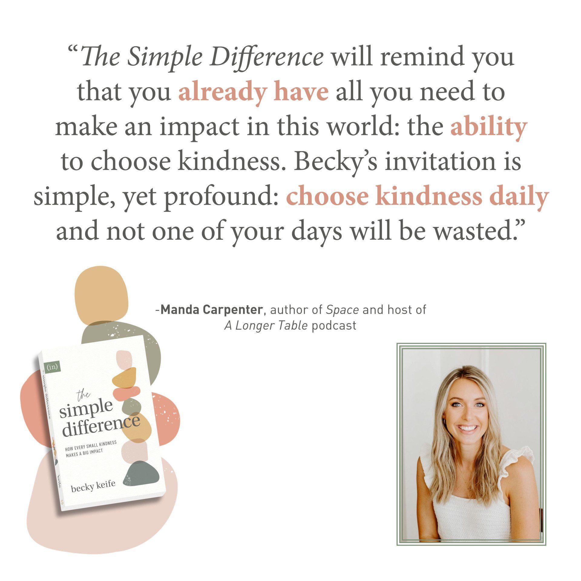 isn't about totally changing the course of your life; it's about letting God change you and work through you in the midst of your ordinary days. To say, As I go on my way, Lord, have your way with me. Be a part of The Simple Difference movement -- your life and the world will never be the same.